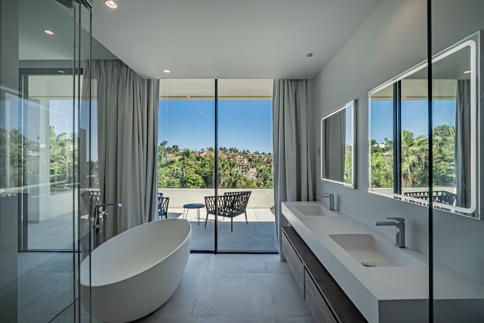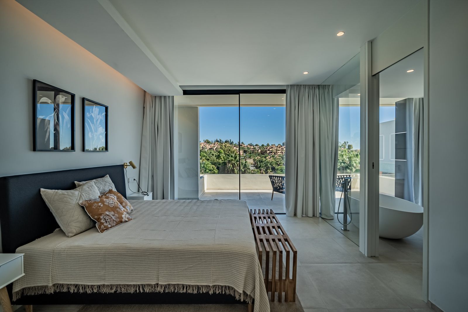 This beautiful contemporary villa for sale in El Paraiso , Estepona, has both sea and mountain views .