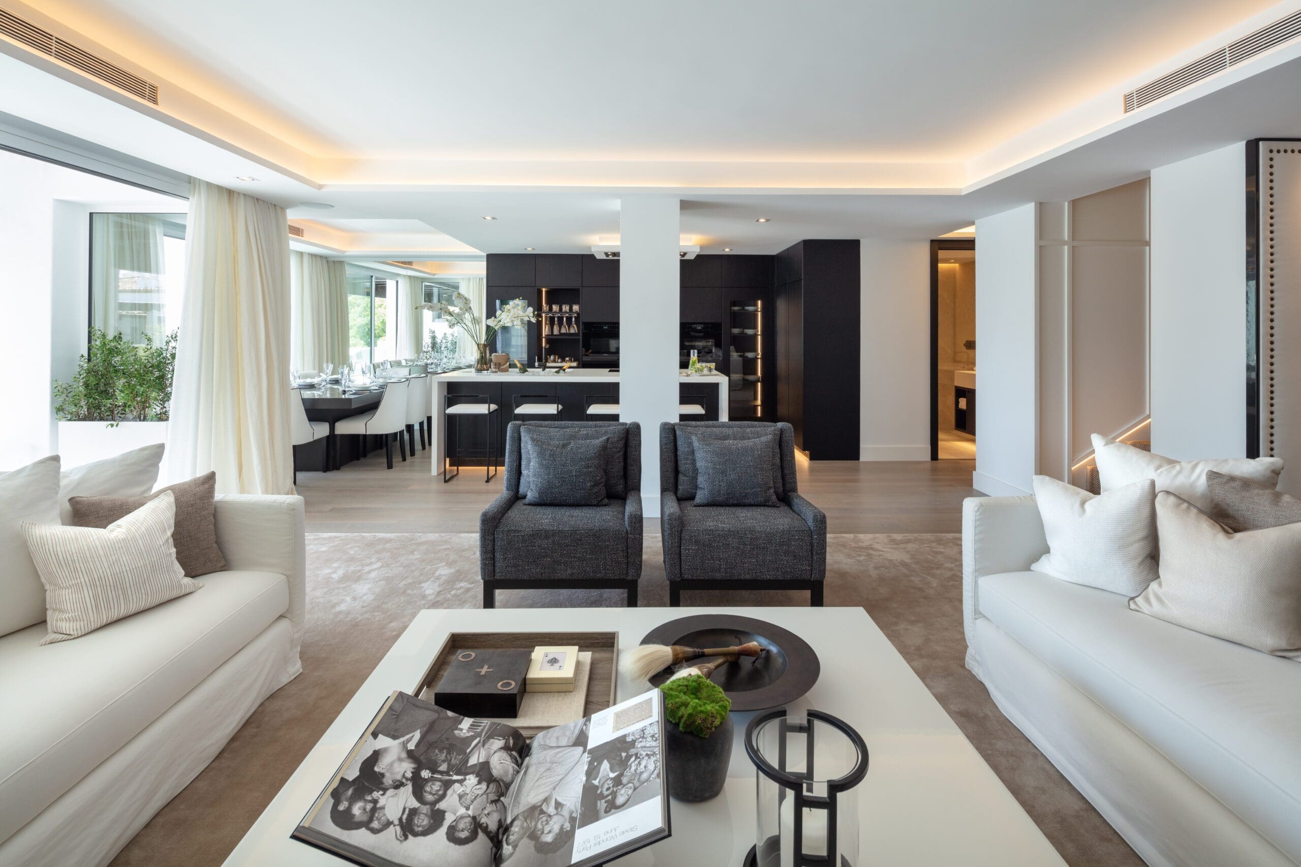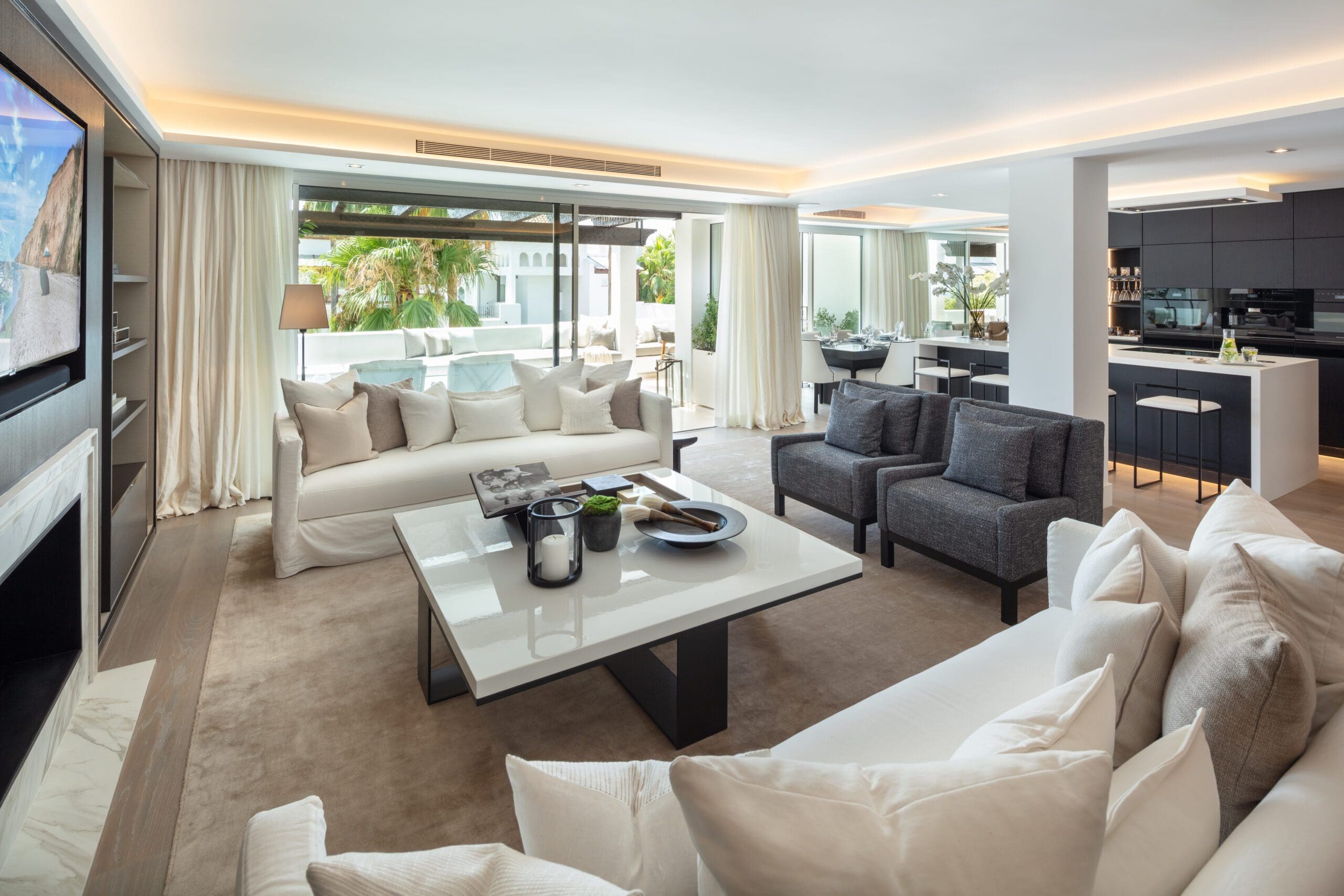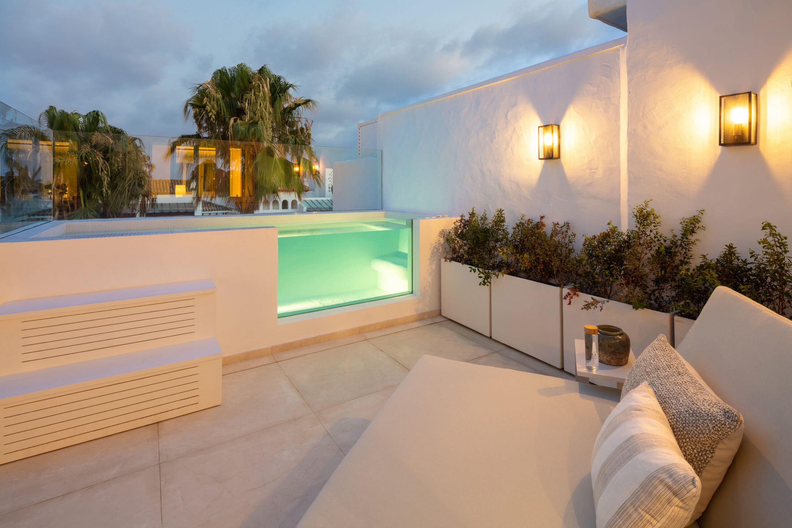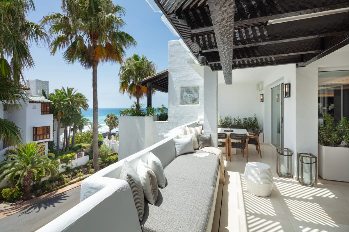 Luxurious two storey duplex Penthouse situated in the prime and highly sought after location of Parisian Gardens within the Puento Romano Resorthttp://www.puentoromano.com> This exquisite penthouse sits right next to golden beaches and has incredible views of the mediterranean sea. It has been refurbished to the highest of standards with top quality designer finish and is turn key ready to move in and enjoy. The large master suit also features a sensational walk in wardrobe. Outdoor areas include a number of south facing terraces for alfresco dining and entertaining friends and a modern glass backed plunge pool. This property is an excellent holiday home or investment opportunity with an extremely high return....
