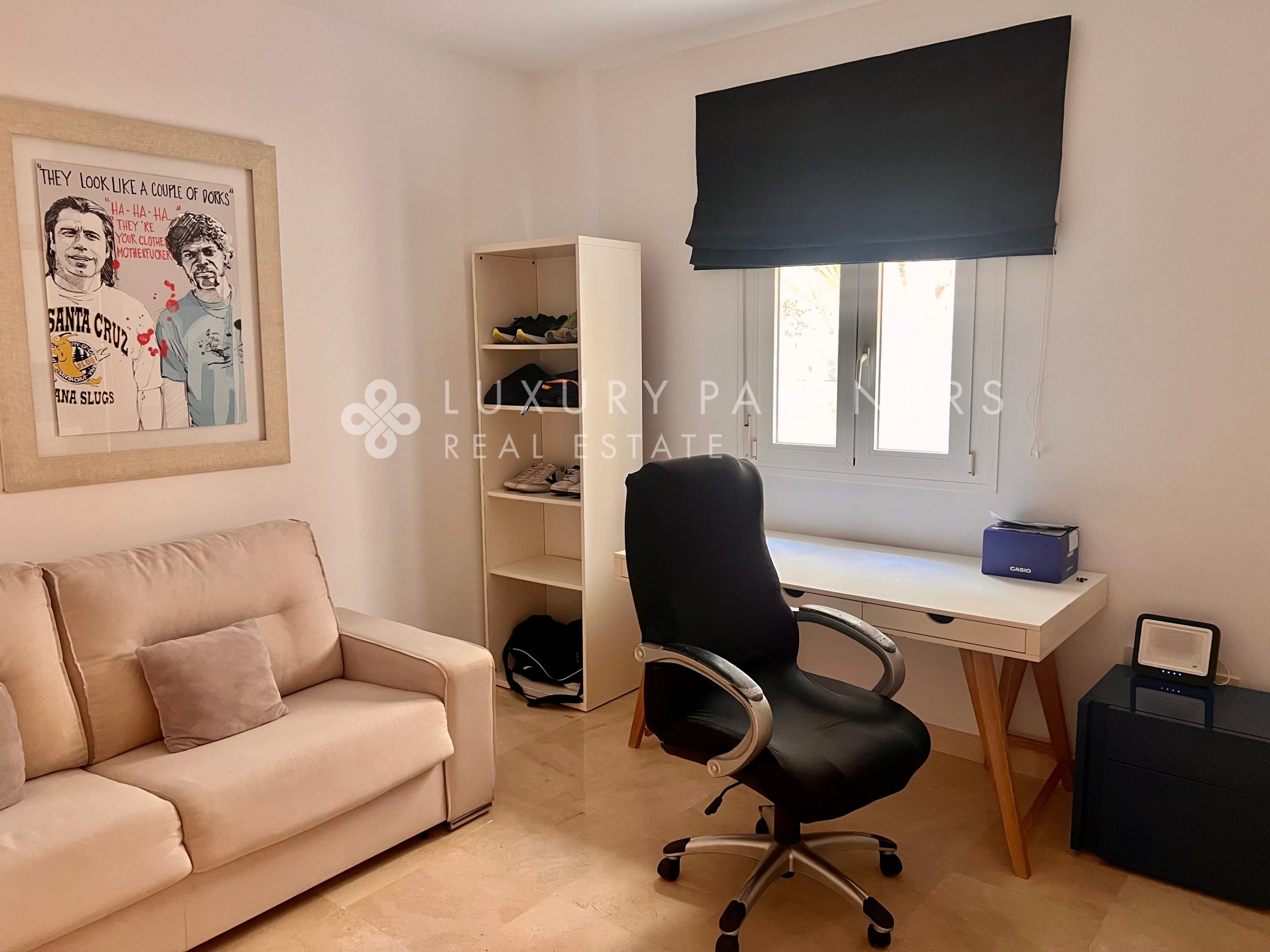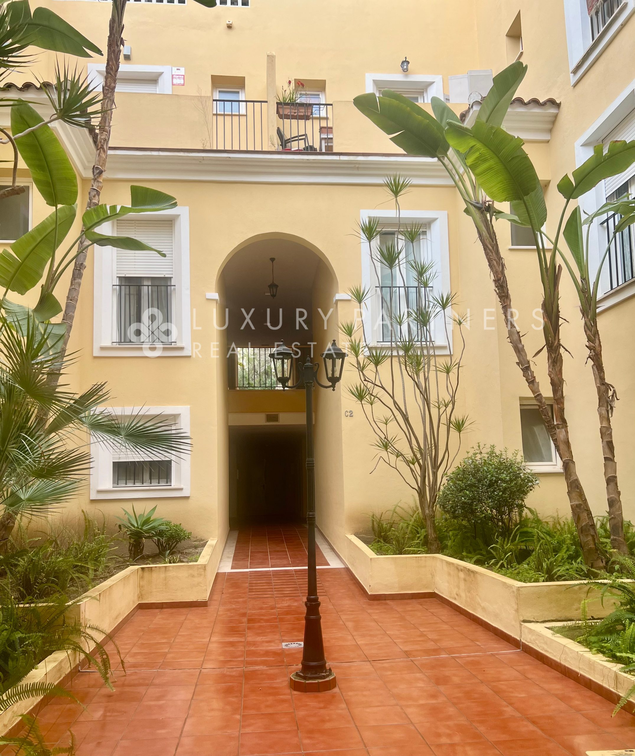 Super Apartment for sale in Sotogrande within walking distance of shops, bars, cafes, restaurants and a gym and also situated in a lovely courtyard development. Prospective buyers will be attracted by the low community charge of 133 euros a month. This perfectly located apartment has 3 large double bedrooms ( one is currently used as a office ) and three bathrooms. The master bedroom has an ensuite bathroom and overlooks the terrace area. There is a spacious, bright  living/dining room with patio doors also opening out to the terrace area which overlooks a green zone. In addition, there is a community pool , 2 underground parking spaces and a storage cupboard.    ...