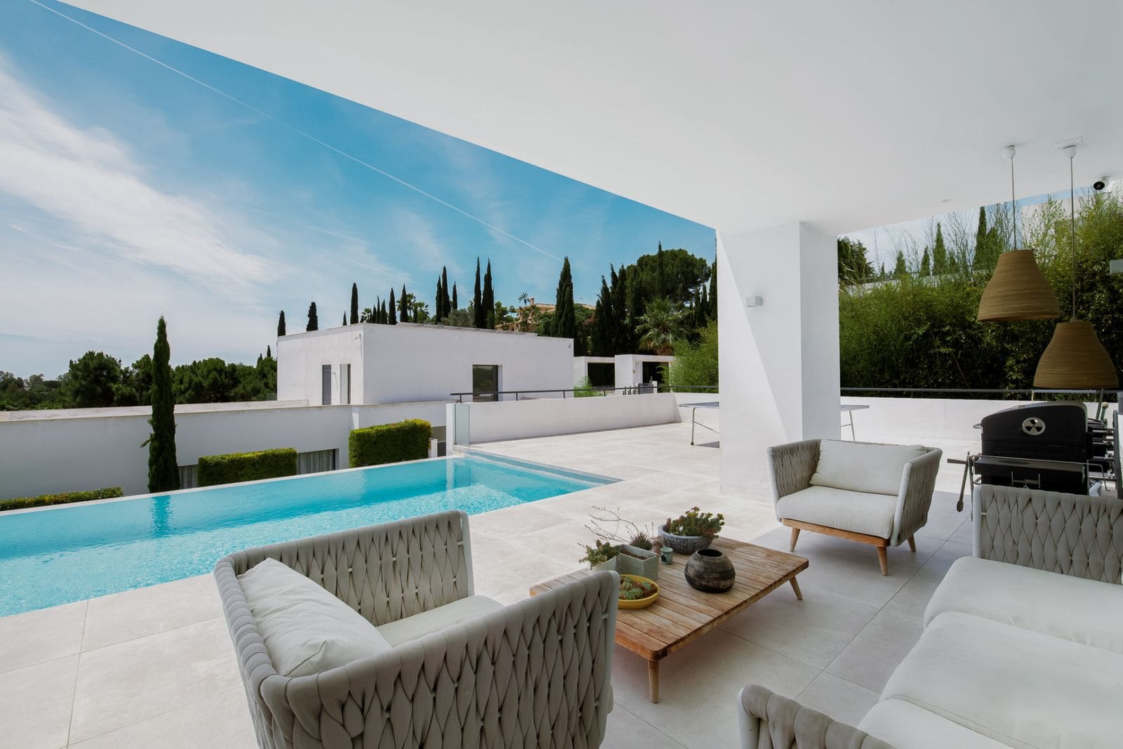 This stunning 4 Bed villa situated in a secure a gated community of luxury villas in La Quinta, Benahavís, Its superior location is surrounded by nature and has excellent sea views . The villa was recently built and has a contemporary open plan design which ensures that all rooms are full of natural light. Glass sliding doors create a perfect interface between the interior and exterior areas, encourage indoor-outdoor living, alfresco dining , entertaining and relaxing in the pool and surrounding area. ...