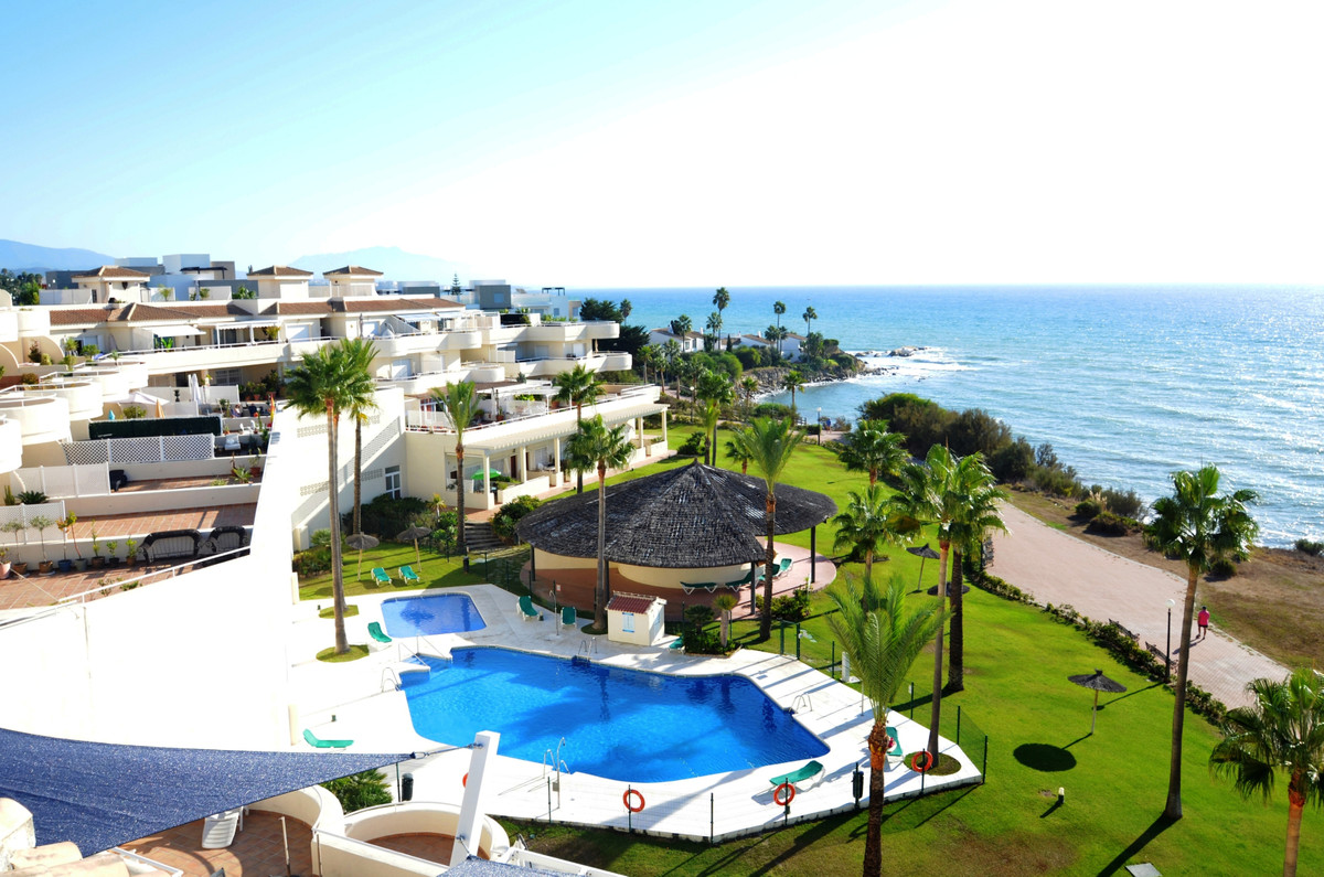 Stunning front line beach 2 bedroomed apartment for sale in Bermuda Beach Estepona. Sitting in an elevated position, with panoramic sea views and within walking distance to the beach . This really is a special property.