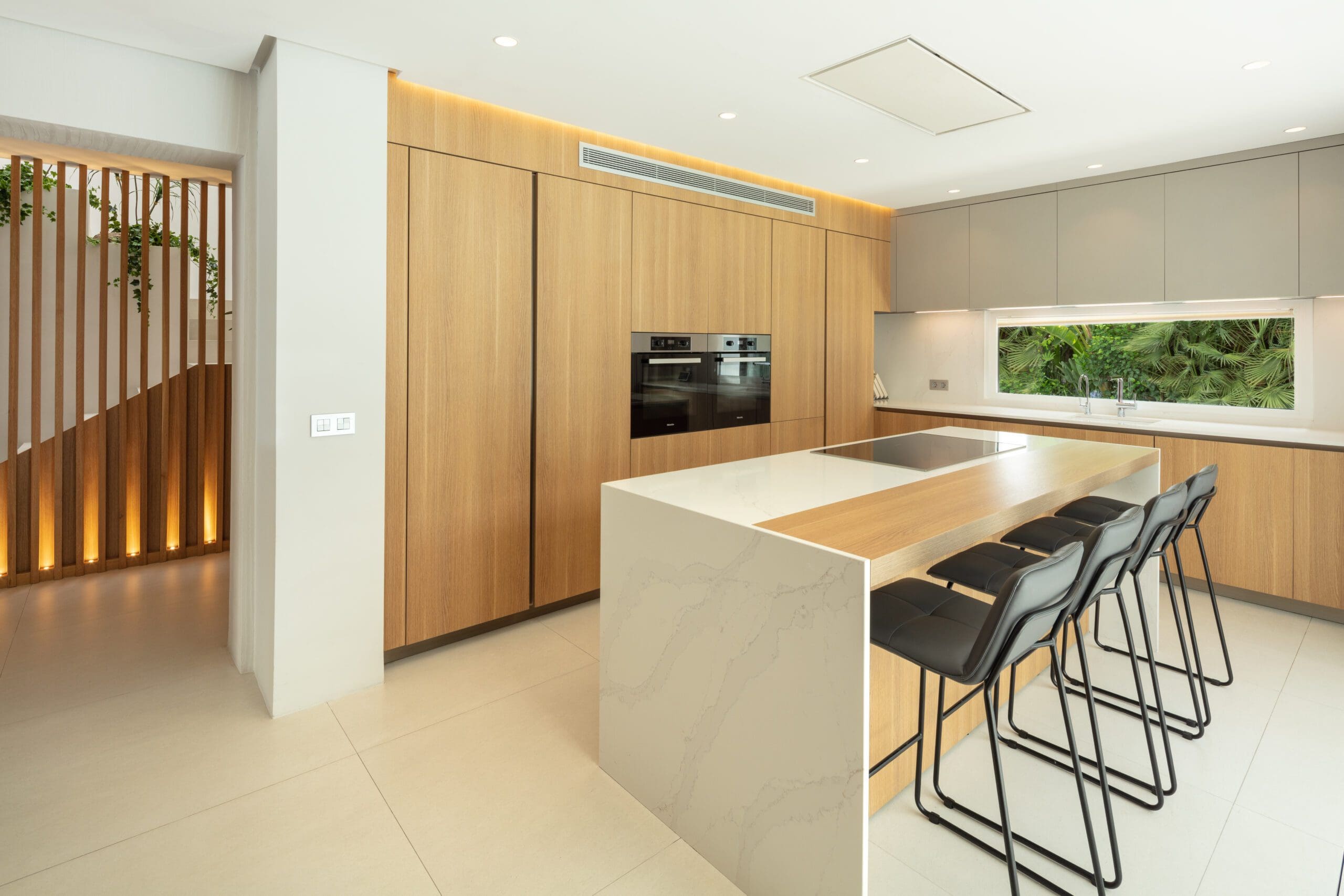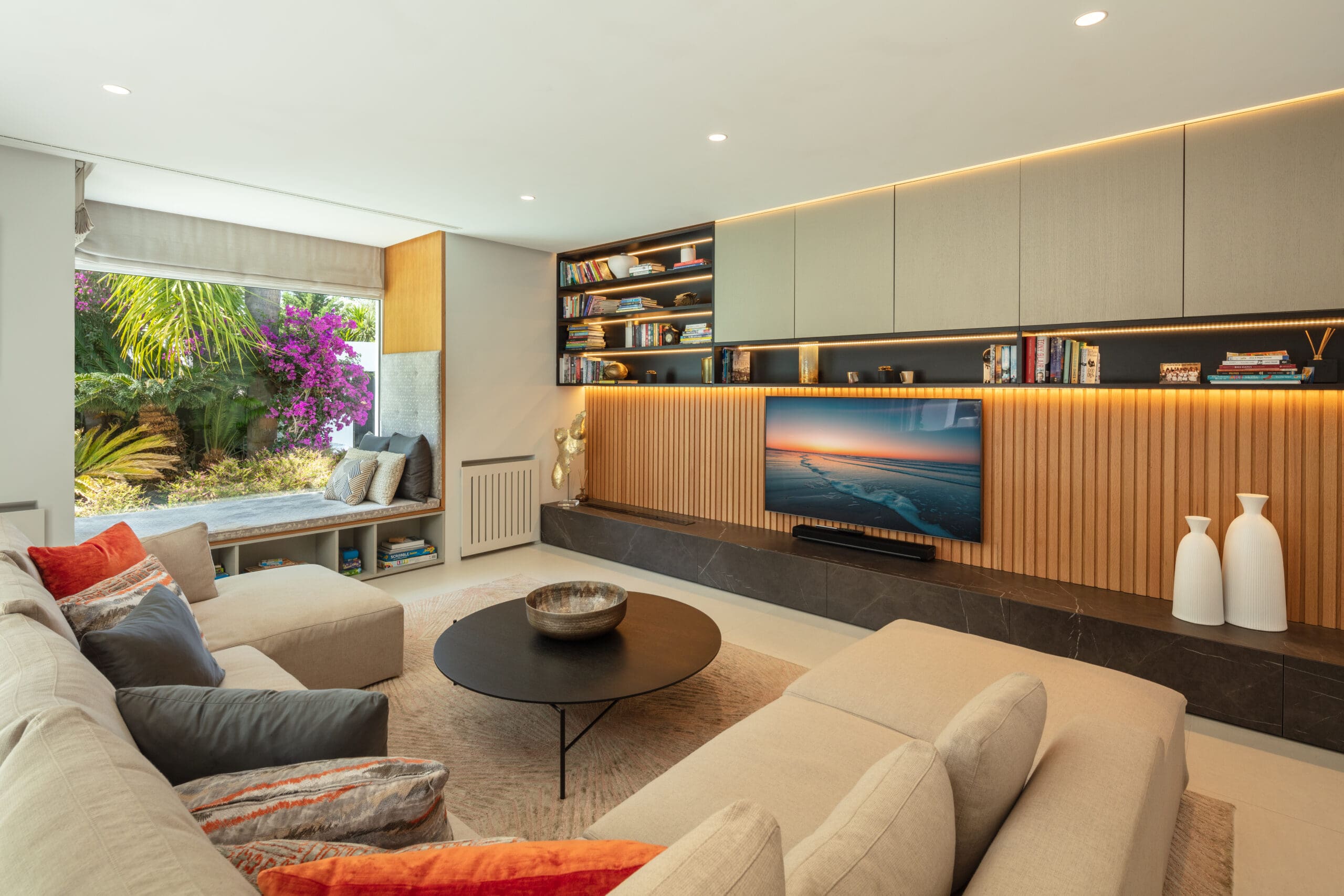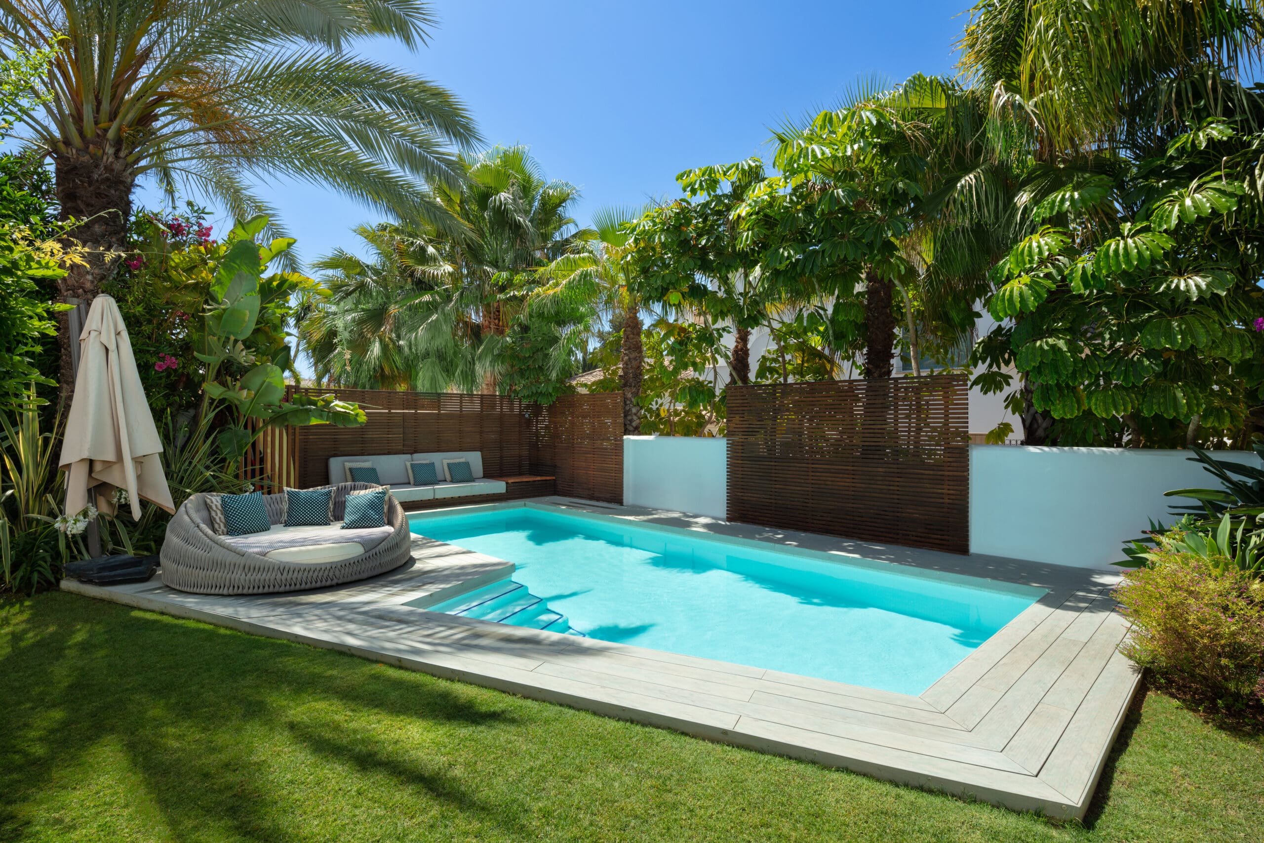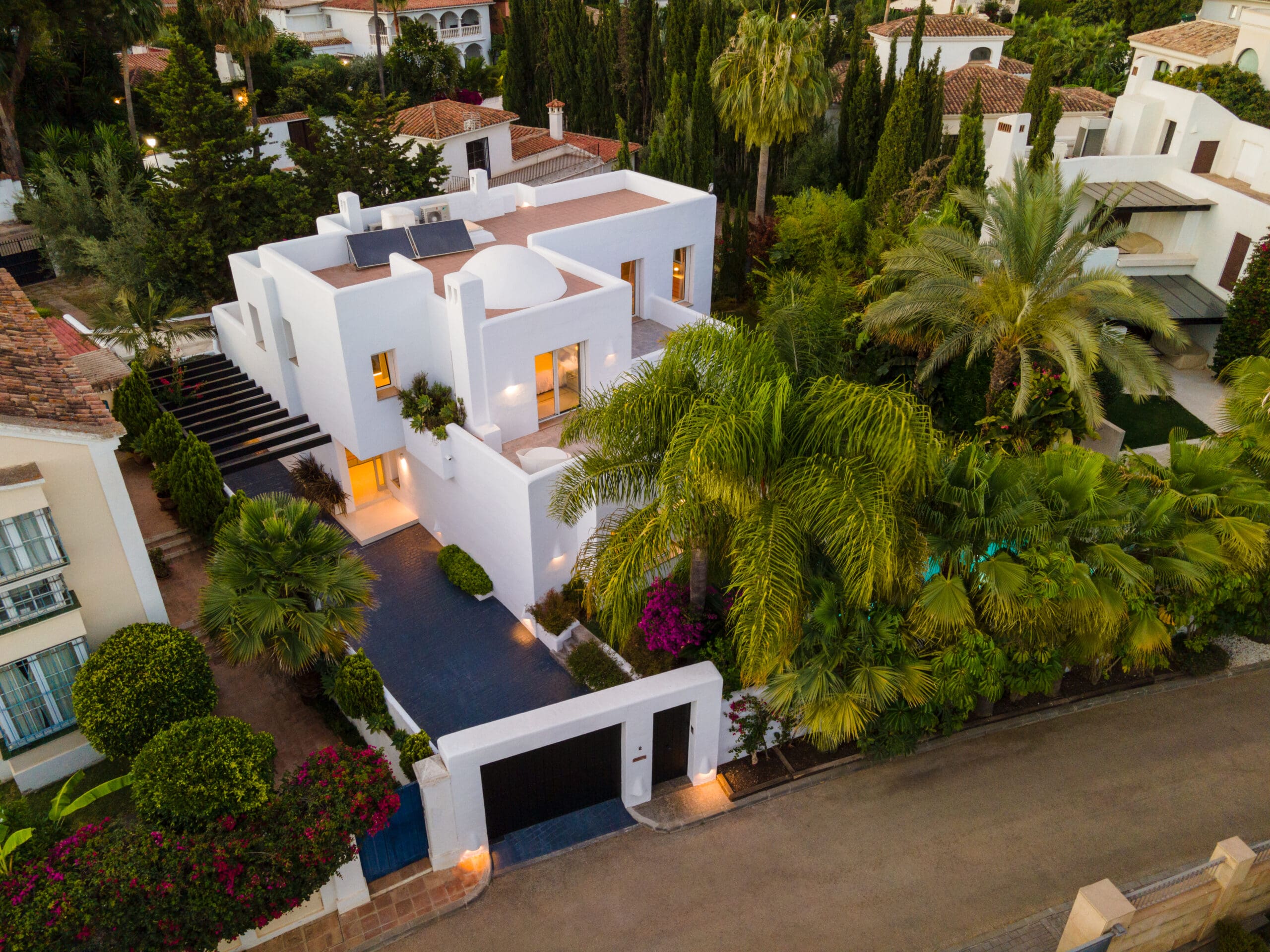 Stylish detached villa located in the prestigious neighbourhood "Casablanca" on the Golden Mile in Marbella . It is only minutes away from the Golden Mile Boardwalk. This exclusive area hosts a varie3ty of luxury amenities such as 5 star hotels, designer boutiques, fine dining restuarants and entertaining beach clubs...