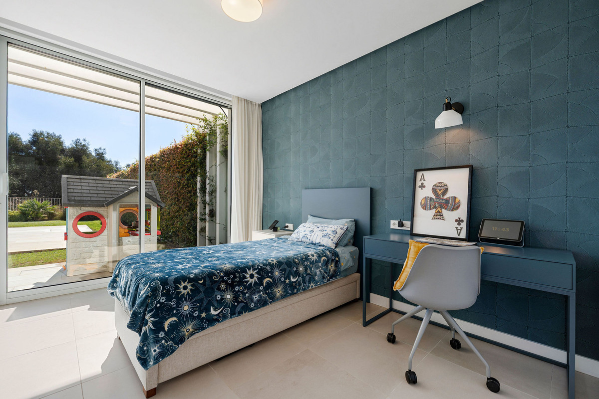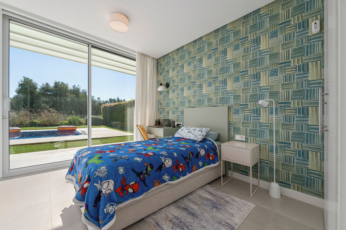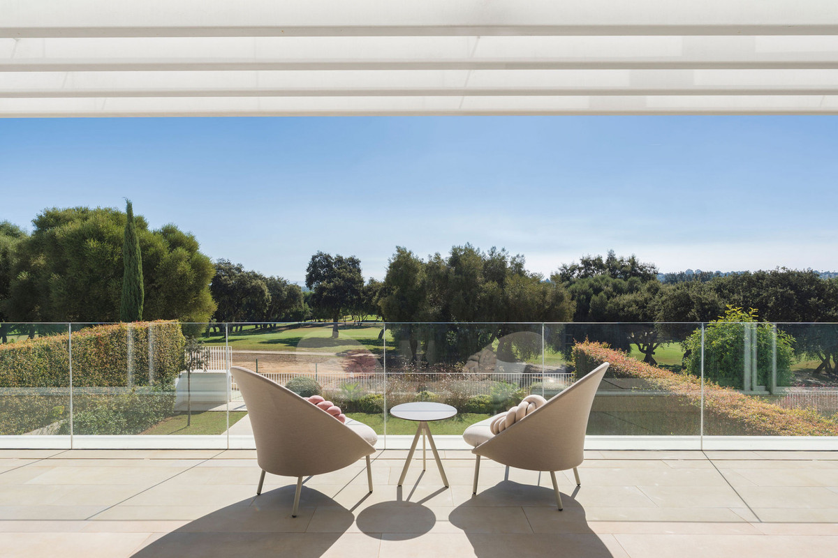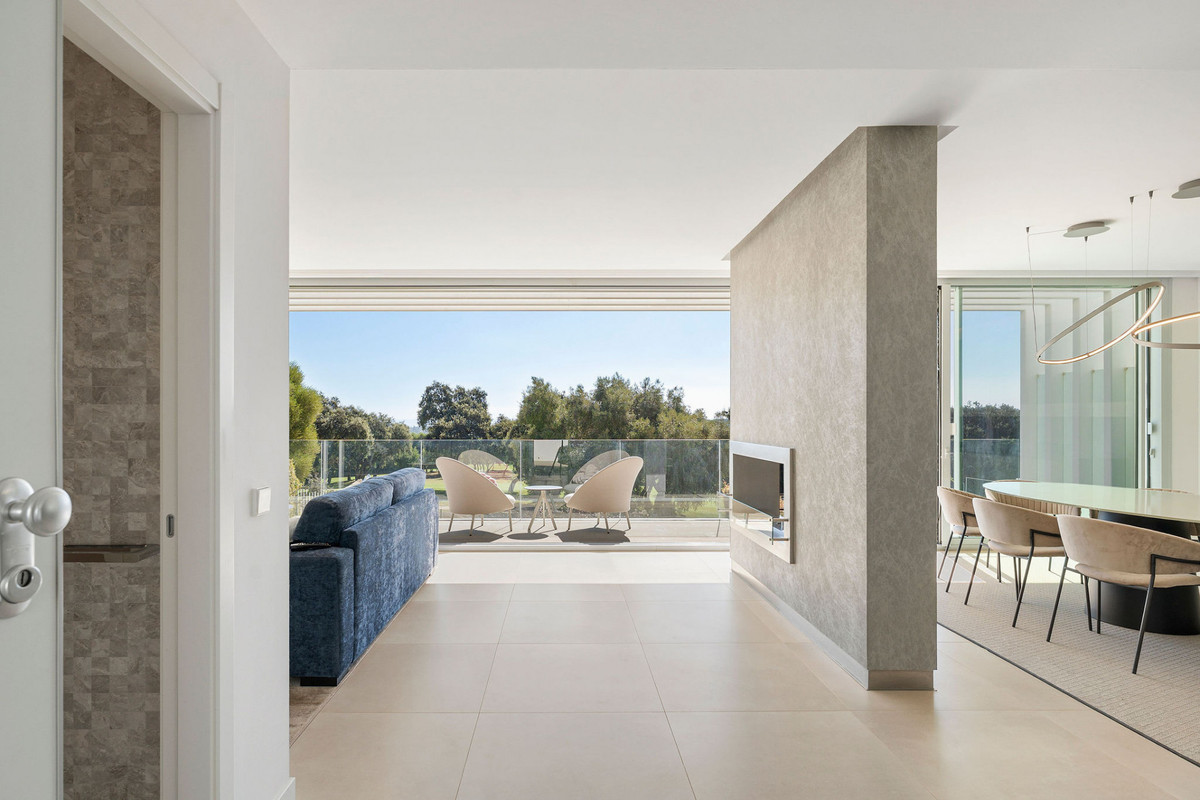 Situated within an exclusive gated enclave of the prestigious La Reserva Club, this striking villa delivers a rare combination of frontline golf views, sea vistas, and seamless indoor-outdoor living across three thoughtfully designed levels. On the garden level, four spacious bedrooms open directly to the pool and landscaped grounds, creating a private retreat for family and guests. Elegant bathrooms with walk-in showers and refined finishes enhance the sense of comfort and style, while the connection to the poolside terrace makes this floor ideal for relaxed, resort-like living. The middle floor is the home’s centerpiece a dramatic, light-filled living and dining space framed by a wall of floor-to-ceiling glass that fully retracts, blurring the line between interior and exterior. Perfect for entertaining, this level also features a sleek, fully equipped designer kitchen, a powder room, and direct access to the covered garage for convenience. The top floor features a bright, spacious bedroom currently used as an office, a separate bathroom, and access to a vast rooftop terrace, an exceptional space for al fresco dining, lounging, or adding a private spa, all while enjoying sweeping golf and sea views. Residents also enjoy access to a gym, swimming pool, and two padel courts, with La Reserva’s world-class golf and beach clubs just moments away. Nearby cafés, dining, and everyday essentials are easily accessible, offering luxury, privacy, and lifestyle in one of Sotogrande’s most coveted addresses....