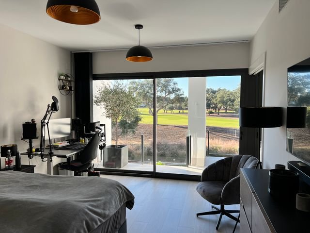 The first floor includes the master bedroom with floor to ceiling windows , views to the golf course, glass fronted balcony and modern ensuite bathroom . There are a further two double bedrooms on this floor which share a large modern bathroom .