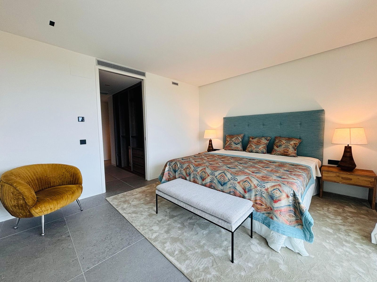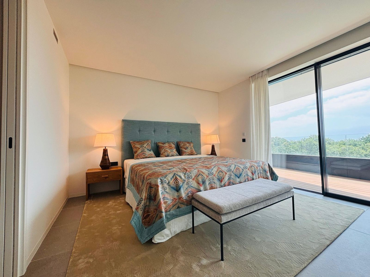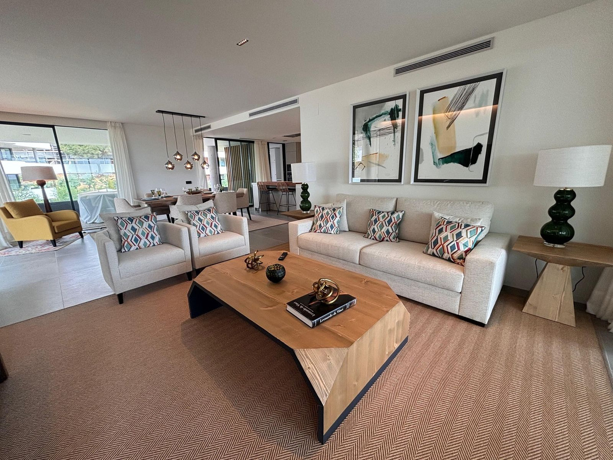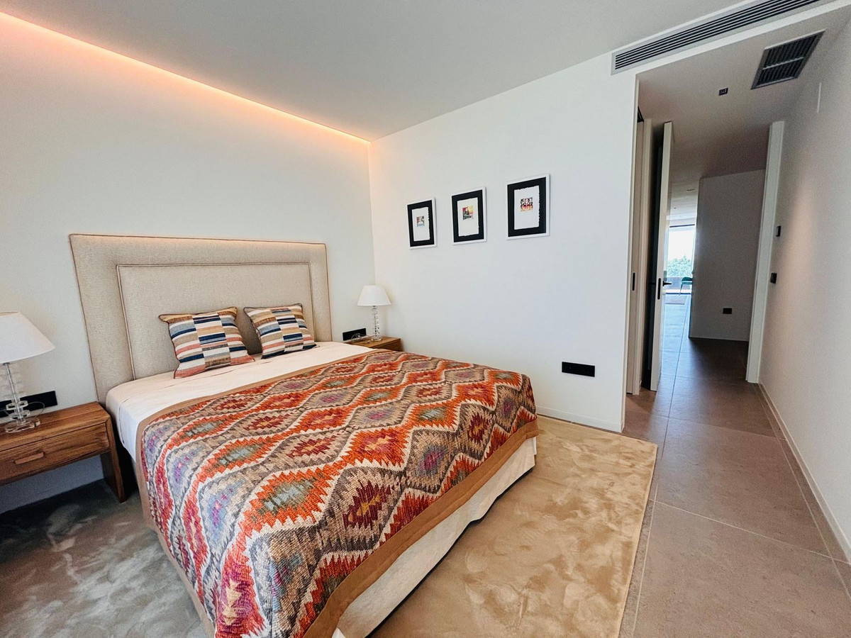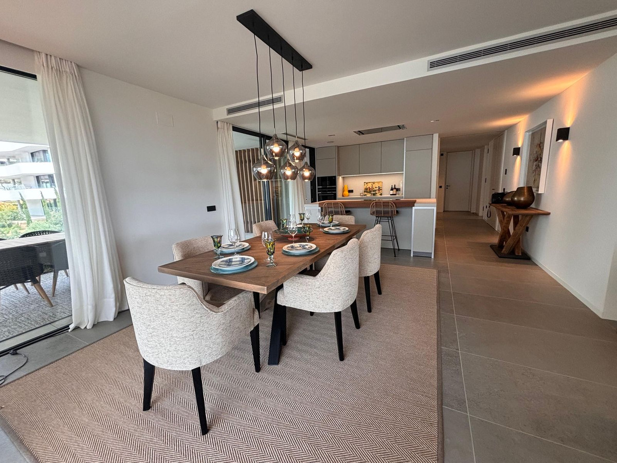 Stunning modern luxury apartment for sale built in 2023 in the prestigious Village Verde in La Reserva. This apartment is in the 1st phase of the development with the best views of the community down to the sea from the extensive wrap around terraces . The fixtures and finishes of this apartment are extremely high quality and are apparent when viewing . There are 3 en-suite bedrooms with an open style L shaped kitchen/dining and living area.. The apartment operates on temperature control with an energy efficient aerothermia heat pump for hot water, air conditioning and underfloor heating. This is a secure gated community with swimming pools and landscaped communal gardens A resident spa with internal pool will open in 2025 The property comes with 2 generous size parking spaces and private It is a short distance to La Reserva golf club , La Reserva Racquet , Padel and Tennis Club , La Reserva the Beach lagoon pool, water sports lake and restaurant.