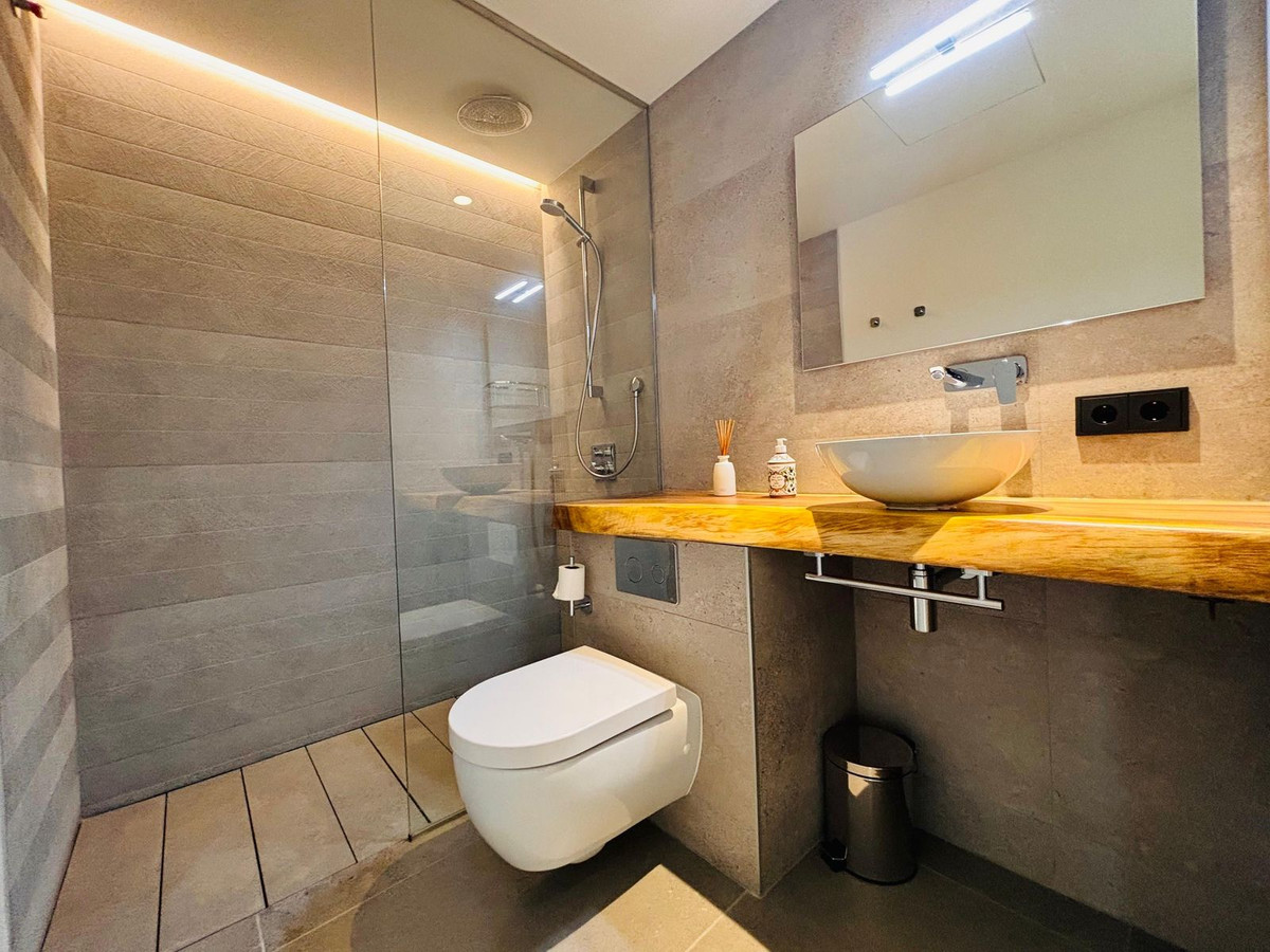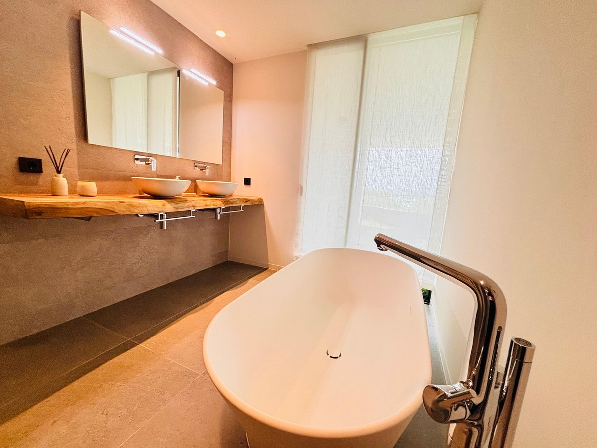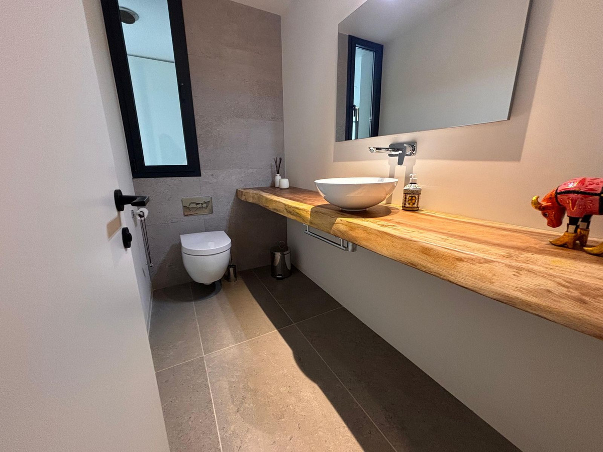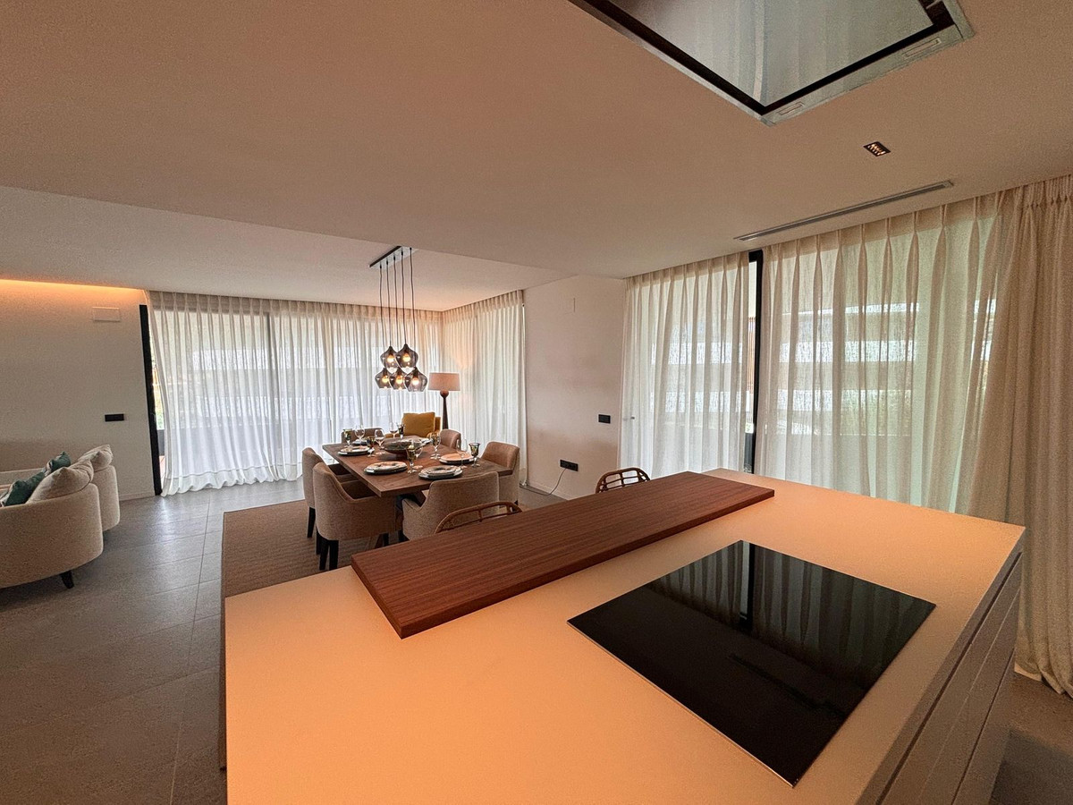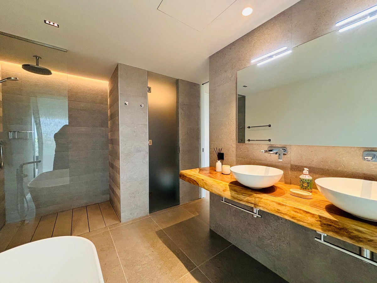 Stunning modern luxury apartment for sale built in 2023 in the prestigious Village Verde in La Reserva. This apartment is in the 1st phase of the development with the best views of the community down to the sea from the extensive wrap around terraces . The fixtures and finishes of this apartment are extremely high quality and are apparent when viewing . There are 3 en-suite bedrooms with an open style L shaped kitchen/dining and living area.. The apartment operates on temperature control with an energy efficient aerothermia heat pump for hot water, air conditioning and underfloor heating. This is a secure gated community with swimming pools and landscaped communal gardens A resident spa with internal pool will open in 2025 The property comes with 2 generous size parking spaces and private It is a short distance to La Reserva golf club , La Reserva Racquet , Padel and Tennis Club , La Reserva the Beach lagoon pool, water sports lake and restaurant.